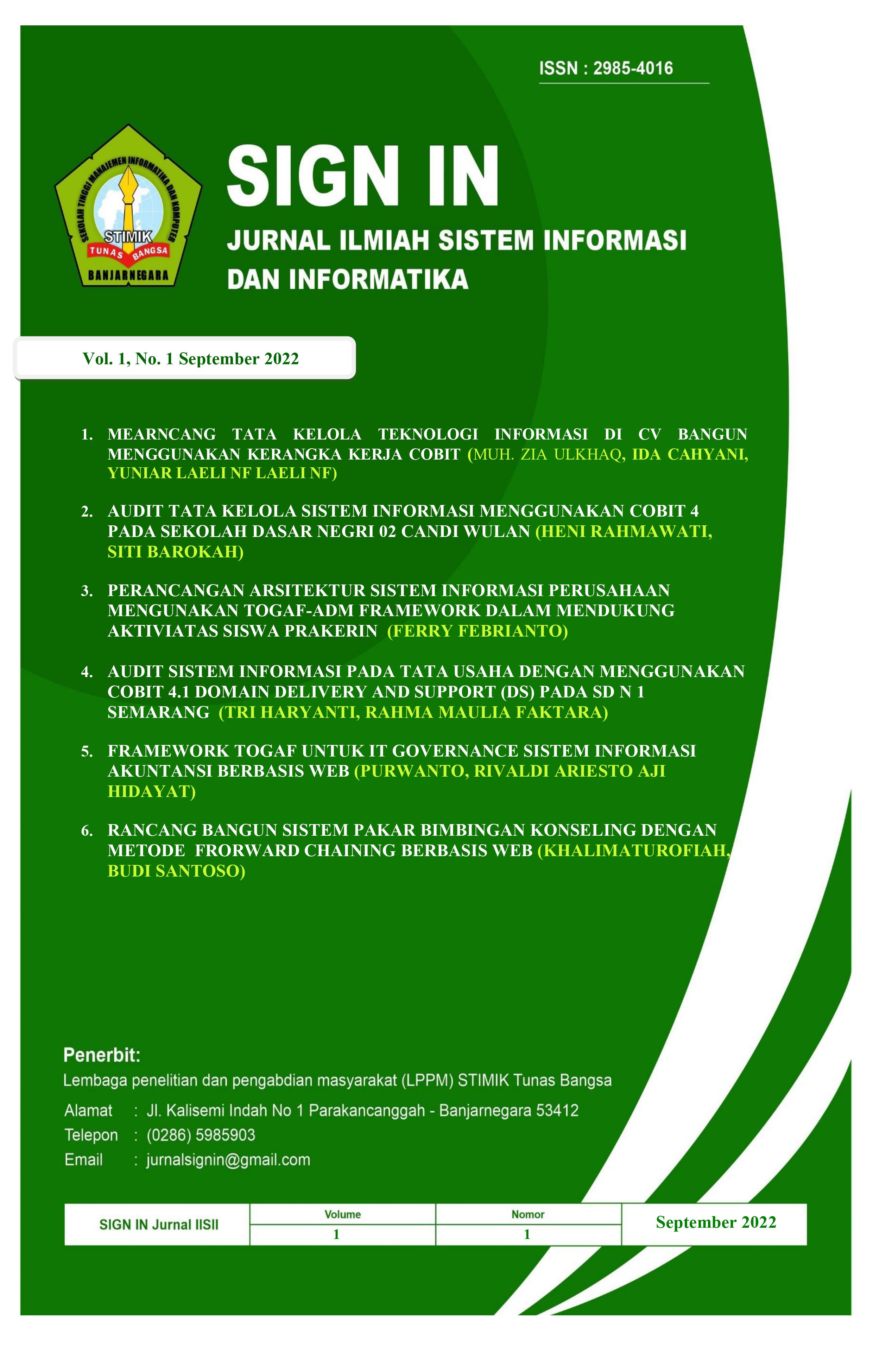 SIGN IN : Junal Ilmiah  Sistem Informadi dan Informatika